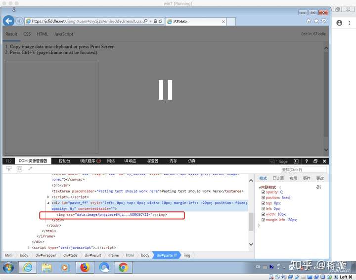 另一个需要注意的点是在 IE 11 下, 我们做了特殊的粘贴图片的处理, 如果我们用程序按下 ctrl+v 你会发现无法粘贴图片, 是因为程序的操作太快了, 没有给我们聚焦 _pasteCatcher 的机会, 但是实际的用户操作的时候并没有这么快, 所以特殊处理一下 IE 11 下的 ctrl+v 的按下的时机, 以更符合实际的用户操作